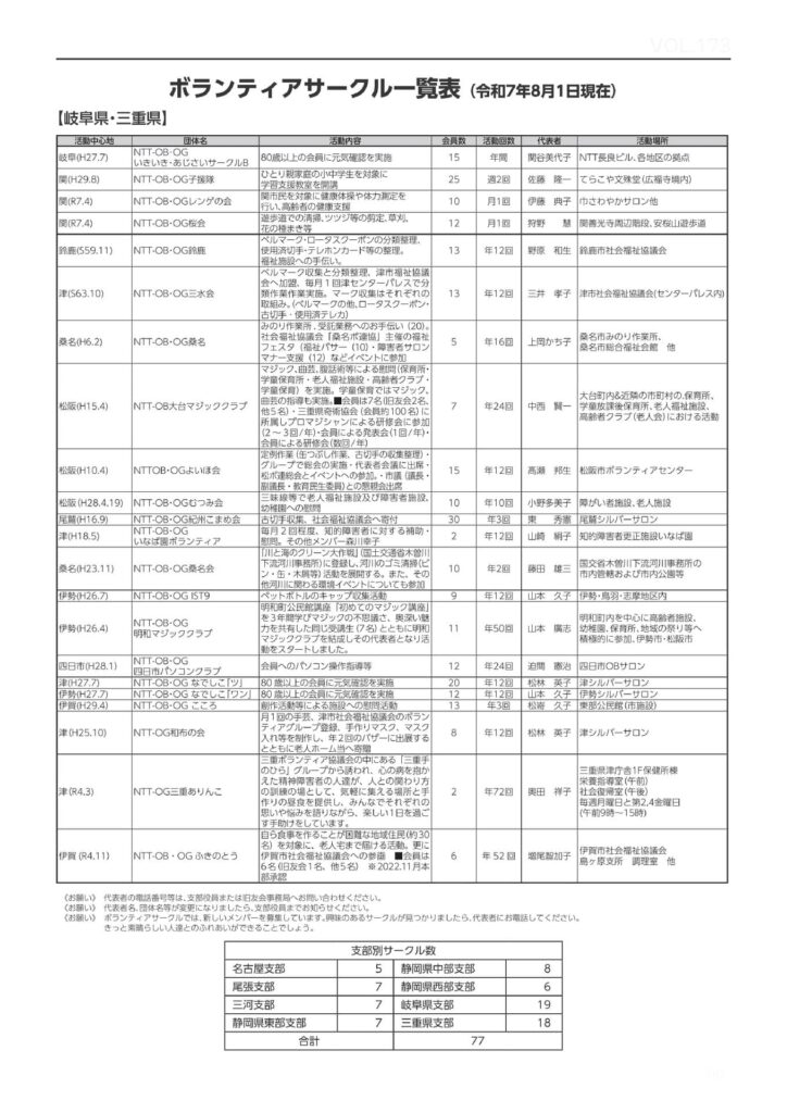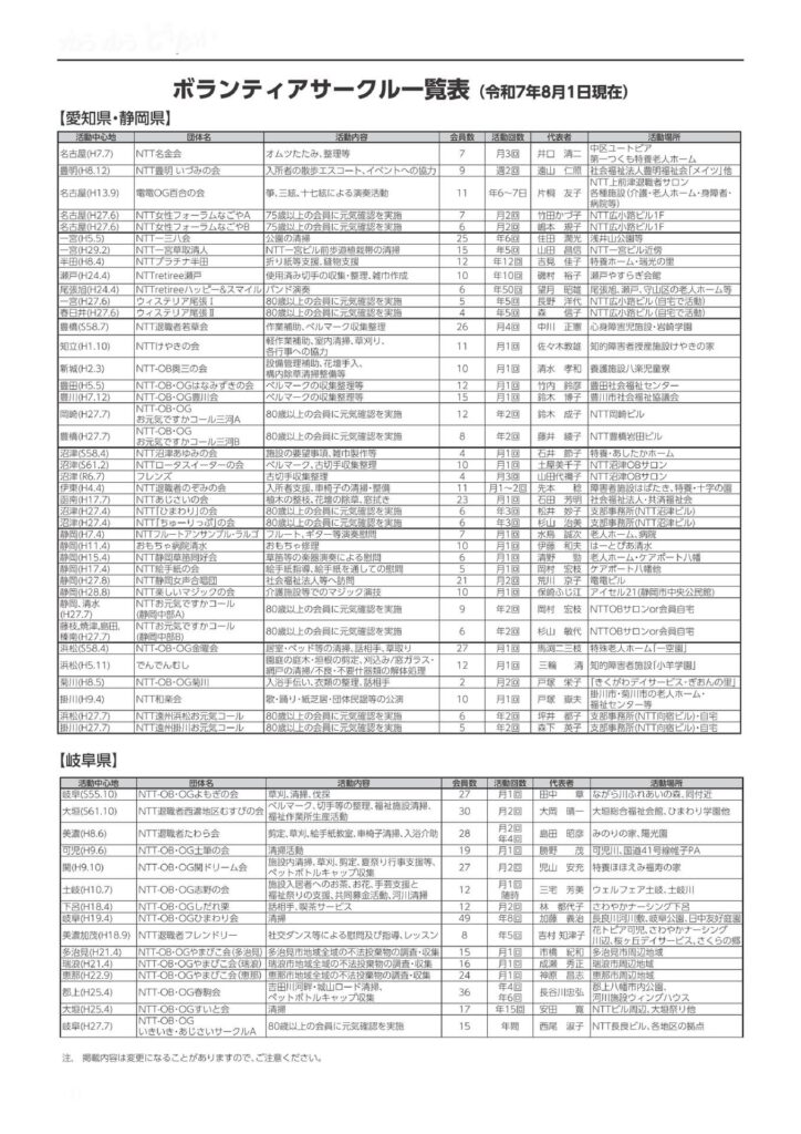 2025年度ボランティアサークル一覧表