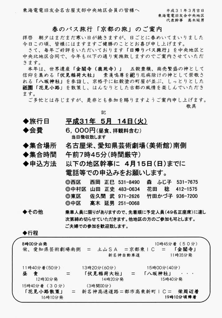中央地区、中央北地区合同「春のバス旅行」についてご案内をしていましたが、
