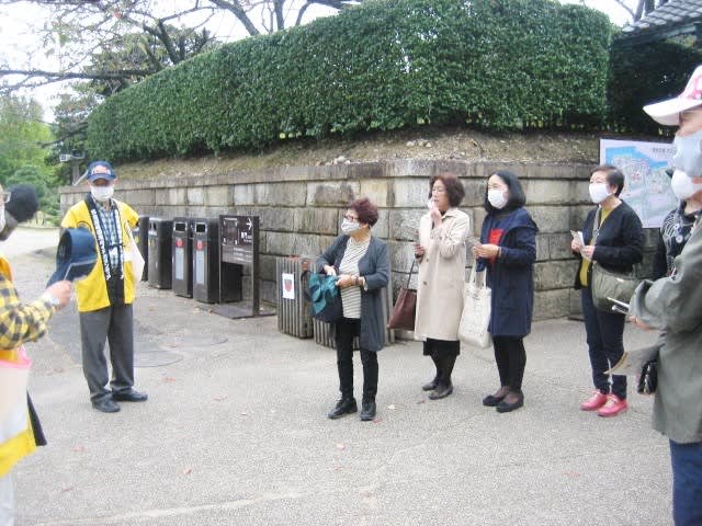 中央地区会員「下条義康様」ほか2名のガイドさんによる、名古屋城内散策開始です。