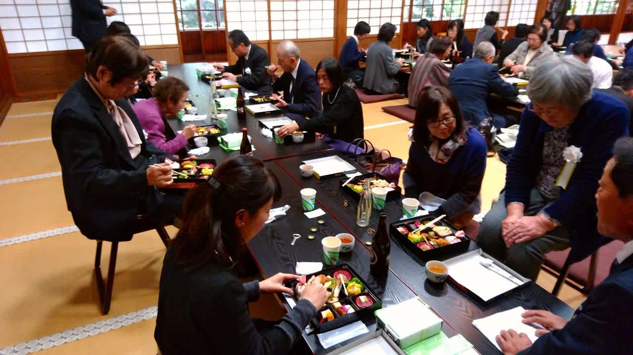追悼の辞のあと荘厳なる読経のなか、物故者全員の読み上げそして参列者全員による焼香が滞りなく終了した後会場を変え昼食会となりました。