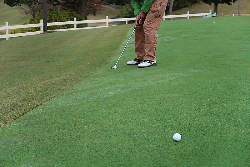 グリーン上は平らなようで傾斜があり、加えて芝目があります。