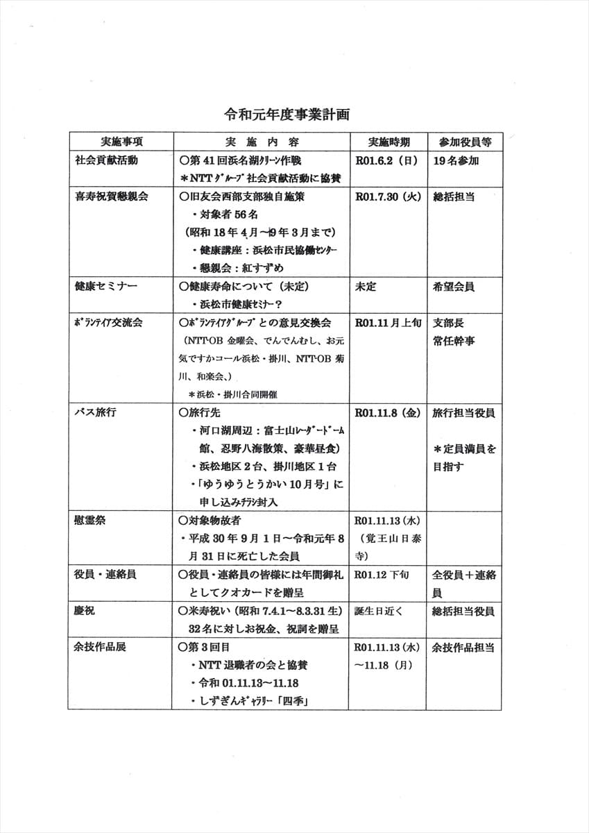 ■5月11日に支部総会にて令和元年の事業計画が承認されたところです。