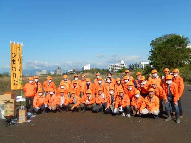 風一つない爽やかな朝、長良川を美しくしよう運動に共鳴している会員36名が日曜日の早朝にもかかわらず岐阜グランドホテル前河川敷に集りました。岐阜新聞社・岐阜放送の提唱による取り組みで、地元の企業をははじ、シルバー人材センターなど多くの団体の参加もあり、当日は、岐阜市に水防団の訓練も行われており、集合場所は大変な賑わいでした。雨上がりの朝で駐車場は少しぬかるんでおり、足元に少し気を使いながら、川原の流木や流れてきたプラスチックごみなどを拾い集めました。WBCの興奮に引き続きプロ野球の中日・巨人の最下位脱出の戦いが白熱している中、なぜか地元の「ドラゴンズブルー」ではなく「ジャイアンズオレンジ」を全員が身にまとっての活動で目立っていました。作業終了後、年1回の総会があり、2022年度の活動報告、収支決算報告、2023年度の活動計画、収支計画等の報告、新規入会会員3名紹介等がありました。来週は、高橋尚子杯ぎふハーフマラソンが行われます。選手の皆さんが爽やかな汗を流しながら、気持く走っていただくことを願います。(向井 繫之 記)