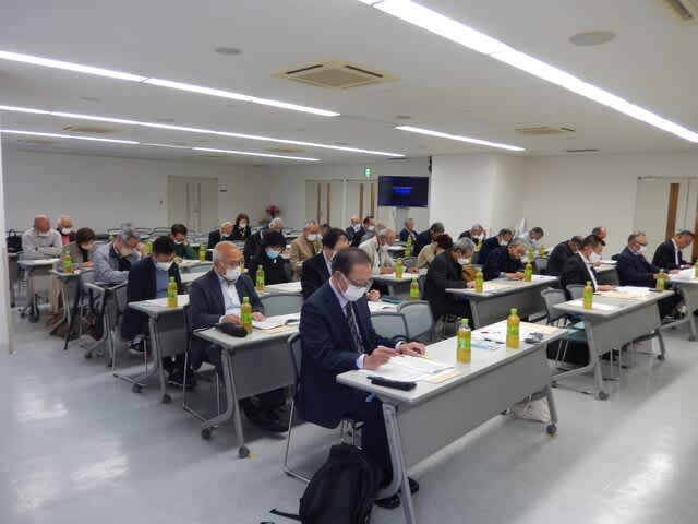2019年度以来、4年ぶりの集合会議方式による開催となり、令和4年度事業報告・収支報告・会計監査報告、令和5年度の事業計画・収支計画を審議し承認されました。田中支部長から交代する支部役員の指名があり、新たに指名した役員への期待と退任する役員への労い・お礼の言葉がありました。また、「今年度は新型コロナウイルス感染症拡大等により、中止・縮小してきた各種活動や取り組みを再開・発展させる年となる。各地区において、会員の皆さんに喜んでもらい、健康で有意義なシニアライフを過ごしてもらえるようお役に立てることを考え取り組みで行きましょう。」との説明があり、参加者全員が意識合わせしました。(中川 美好 記)