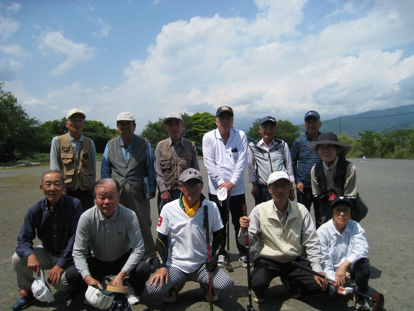 大型連休明けの風薫る5月の良き日に、日頃鍛えた(?)腕試しを兼ねてグランドゴルフに興味を持つ仲間が集い、感心したり、残念がったりしつつ4ゲーム(8ホール×4回)を楽しみました。