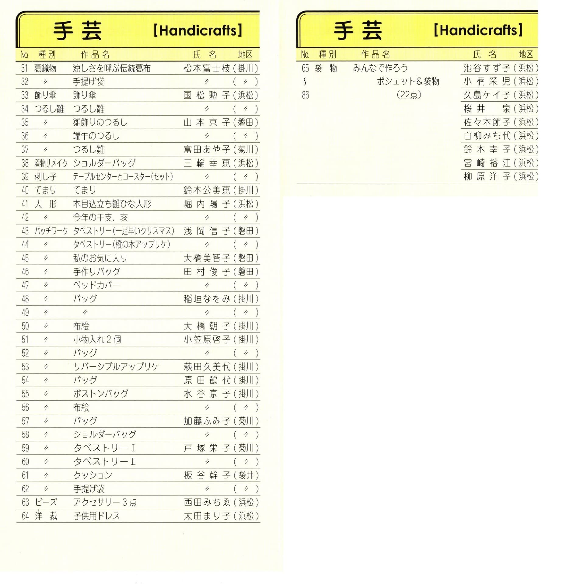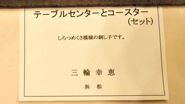 令和元年 退職者作品展目録 手芸部門 退職者作品展 2023.06.012025.10.19 ※会場に行けなかった方のための写真目録です。作者の制作意図とのミスマッチはご容赦ください。※撮影漏れがあるかもしれません。順不同です。