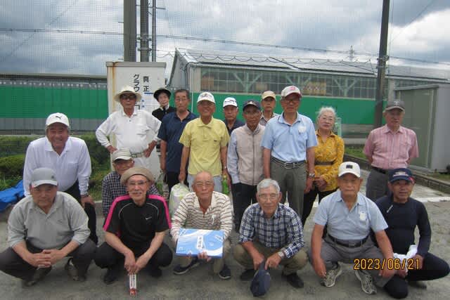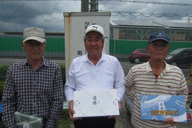 第71回大会を、いつもの本巣市みどり公園で3組編成で実施しました。暑い日が続きましたが、この日は曇り空で時より風が吹く気持ちのいい天候に恵まれた大会となりました。しかしながら、グラウンドコンディションは前回とは違い雨の無い天候続きのため、グラウンドゴルフには適さない状態(砂が集ったところ、砂がないところが点在し、ねらった🥎が微妙に変化)でした。そのせいかホールインワン達成者は5名、スコア30台は3名と低調な大会となりました。大会の優勝者は尾崎孝氏(37打)、2位は杉野博久氏(38打)、3位は安藤隆秀氏(39打)でした。今年も優勝者は逆ハンディキャップを与えて参加してもらいます。今回の入賞者の景品は暑い日には、のど越しのいい素麵にしました。写真は左から安藤氏・尾崎氏・杉野様です。次回は9月に本巣市みどり公園にて行います。興味のある方は(090-2570-1270)まで連絡をお願いします。(村瀬 秀志 記)