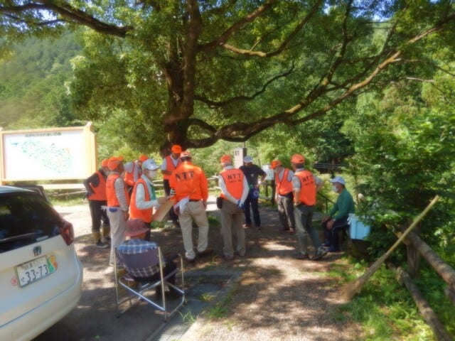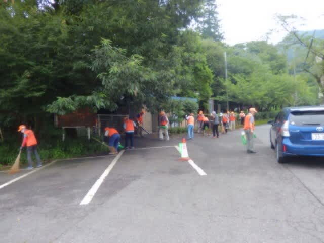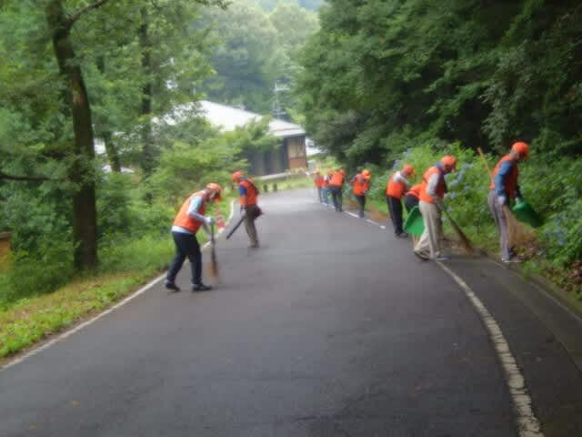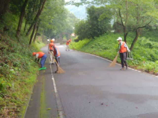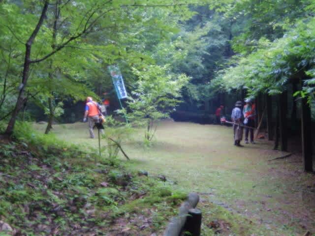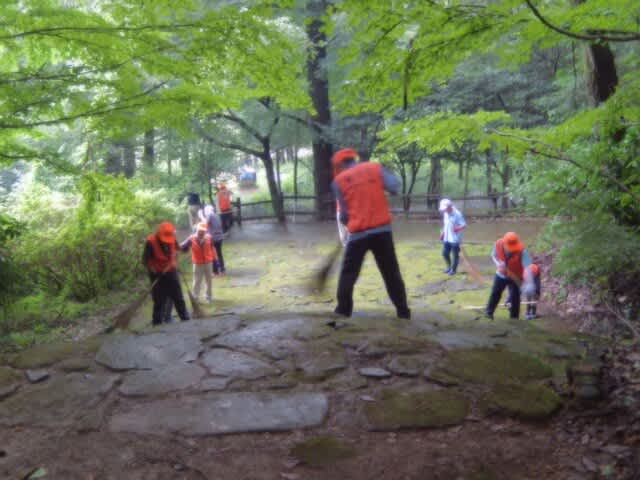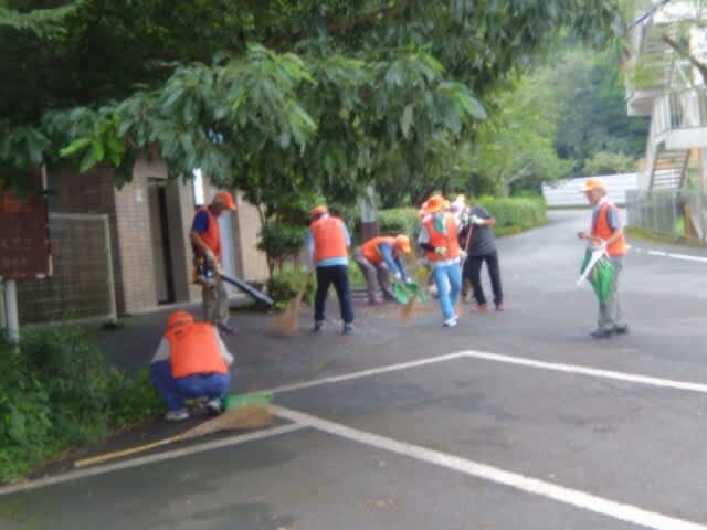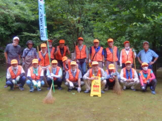 曇天、立っているだけで汗がにじむような蒸し暑い朝、四季の森センターの駐車場に、いつものメンバーが集まりました。1週間前の予定が、長引く梅雨で延期された活動でメンバーはやる気満々、予定時間より早く作業開始、駐車場へつながる車道の清掃は、今回、電友会の物品支援で調達したエンジンブロアの活躍もあり、手際よく終了しました。また、藤棚のある記念植樹広場の清掃作業は、遠方から参加の会員(堀口さん)の電動草刈機の活躍で、一気に綺麗になりました。手際よくできたものの、暑さのため皆さんしっかり汗をかきました。また、今回は、新たな会員2名(横山さん、松原さん)の参加の紹介がありました。若い力の今後の活躍を期待します。さらに、今回は、もう一つ応援がありました。記念植樹広場の脇の林にサンコウチョウが巣を作り子育て中、間もなく巣立つとのことで多くの野鳥カメラマンが大きなカメラを向けていました。邪魔しないよう気を使いながら作業し、元気な巣立ちを願いつつ、それぞれの住み家へ帰りました。(古川 修武 記)