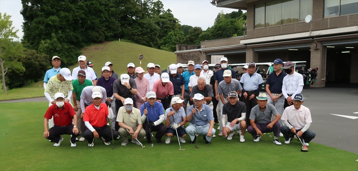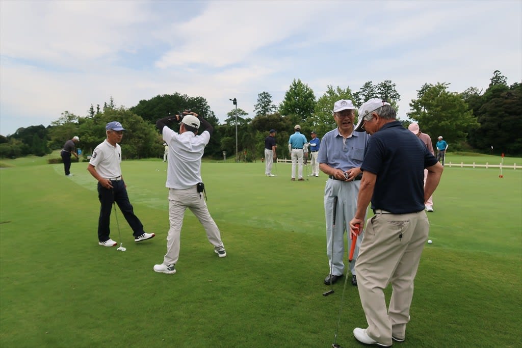 今回は38名の参加でした。グリーン上で、ゴルフ談義・近況報告など楽しそうです。