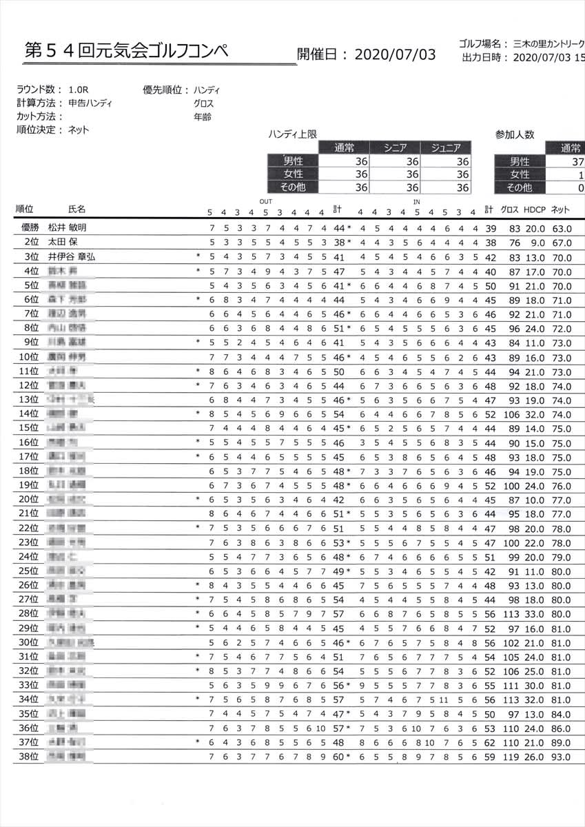 成績は午後からの雨のためか、皆さん悔いの残る結果だったのでは。