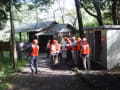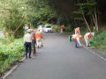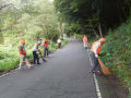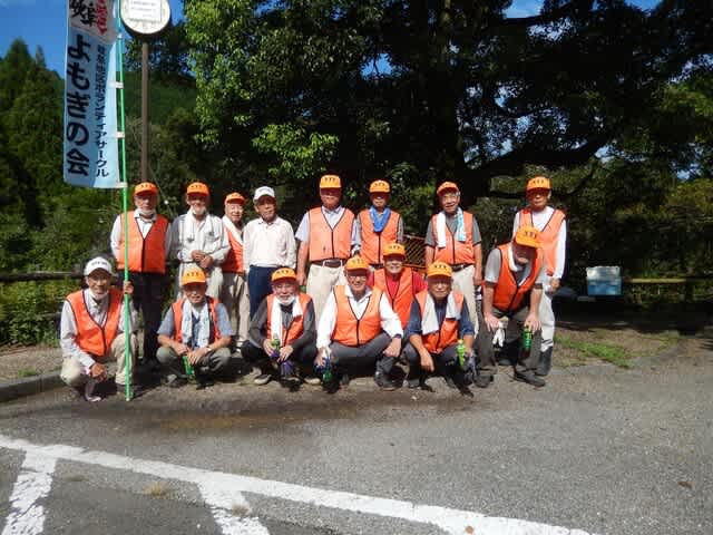 曇り空ながり蒸し暑い朝、早起きのメンバーが四季の森センターの駐車場に集まりました。参加予定者が集るのを待ちながら近況報告会、メンバーの一人が、”今、百々ケ峰( *)へ登り降りてきたところ”のこと、(標高417m、往復1.5~2時間) 元気で何よりです。いつもの駐車場へつながる車道の清掃は、台風と長雨により湿った落葉が散乱しており、”暑い””暑い”と言いながらも手際よく除去しました。作業終了後、清掃用品保管庫への移動途中、四季の森センターの事務職員から”いつも、いつもありがとうございます”とのお礼の言葉があり、少し涼しくなりました。なお、先月の清掃作業時に脇の林から作業を見守り応援してくれていた子育て中のサンコウチョウは、無事巣立つことができたようで多くの野鳥カメラマンとともにその姿は見えませんでした。(古川 修武 記)