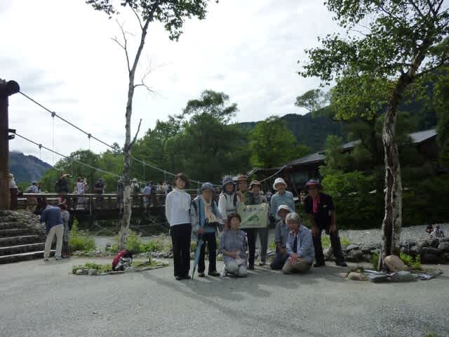 次は上高地へ、ウォーキングマップを手に大正池を出発し、梓川右岸を田代橋~ウェストン碑~河童橋へと足ならし。足元には高原の可憐な花々が咲き、金彩を施こしたススキ、実を付けたマユミなど自然の移ろいを感じながら、ケショウヤナギの林を散策しました。河童橋付近は、登山者や観光客で大変にぎわっていました。そんな場に仲間入り、ルンルン気分爽快!❣