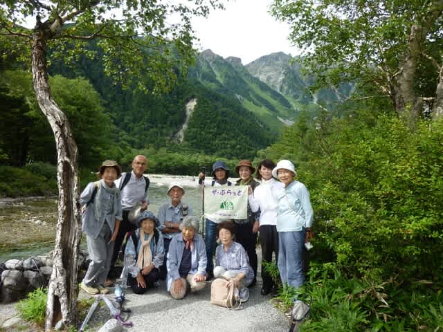 穂高岳や明神池、活火山の焼岳の素晴しい眺め、小梨平の清流にはバイカモが、その両岸にはトリカブトやキツリフネソウが咲き、❛涼風颯颯(りょうふうさつさつ)❜。そんな声をあとに帰路につきました。(五ケ山 絹子 記)