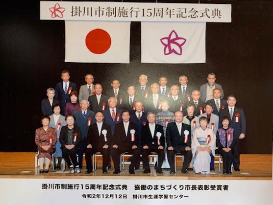 今回の受賞式典には、川隅代表が参列し掛川市長より、その活動に対しての「感謝状」をいただいたものです。2020年度は新型コロナ感染拡大の影響で、4月から休止状況でしたが、こうした評価を頂きメンバー一同大変喜んでおります。