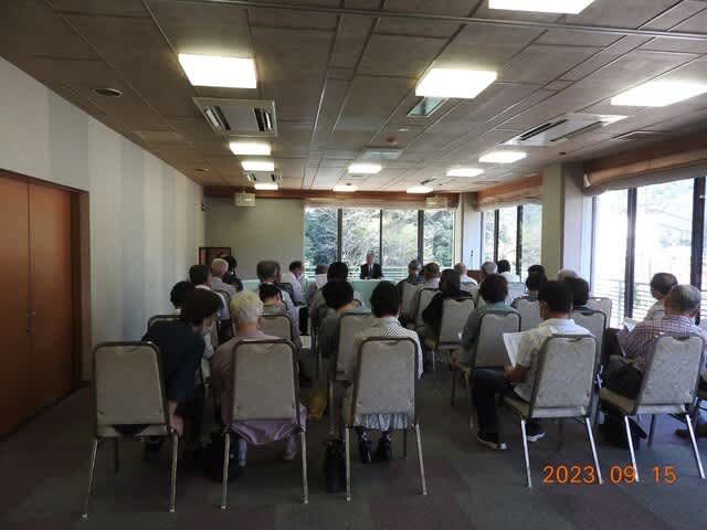 続いて、元会長である岡本修さんの乾杯で懇親会に移りました。久しぶりの再会に健康を確かめ合ったり、昔話に花を咲かせたり、時間のたつのも忘れて楽しい時間を過ごしました。名残がつかないうちにお開きの時間となり、加藤輝夫さんの閉会の言葉で終了しました。(中島 秀孝 記)