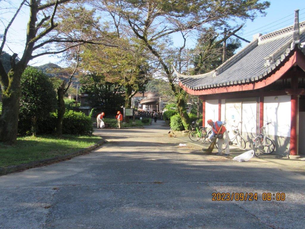 朝夕は涼気を感じるようになり、公園の道端には赤く鮮やかに咲いた彼岸花が丁度見頃の中での清掃活動となりました。最近は、コロナに加えてインフルエンザの感染も拡大しているという報道もあり、まだまだ油断が出来ない状況にあります。本日は、久しぶりに会員相互の意見交換会を思い思いの場所で実施し、昔話等で大いに盛り上がりました。(向井 繁之 記)