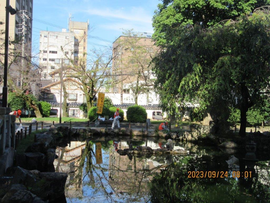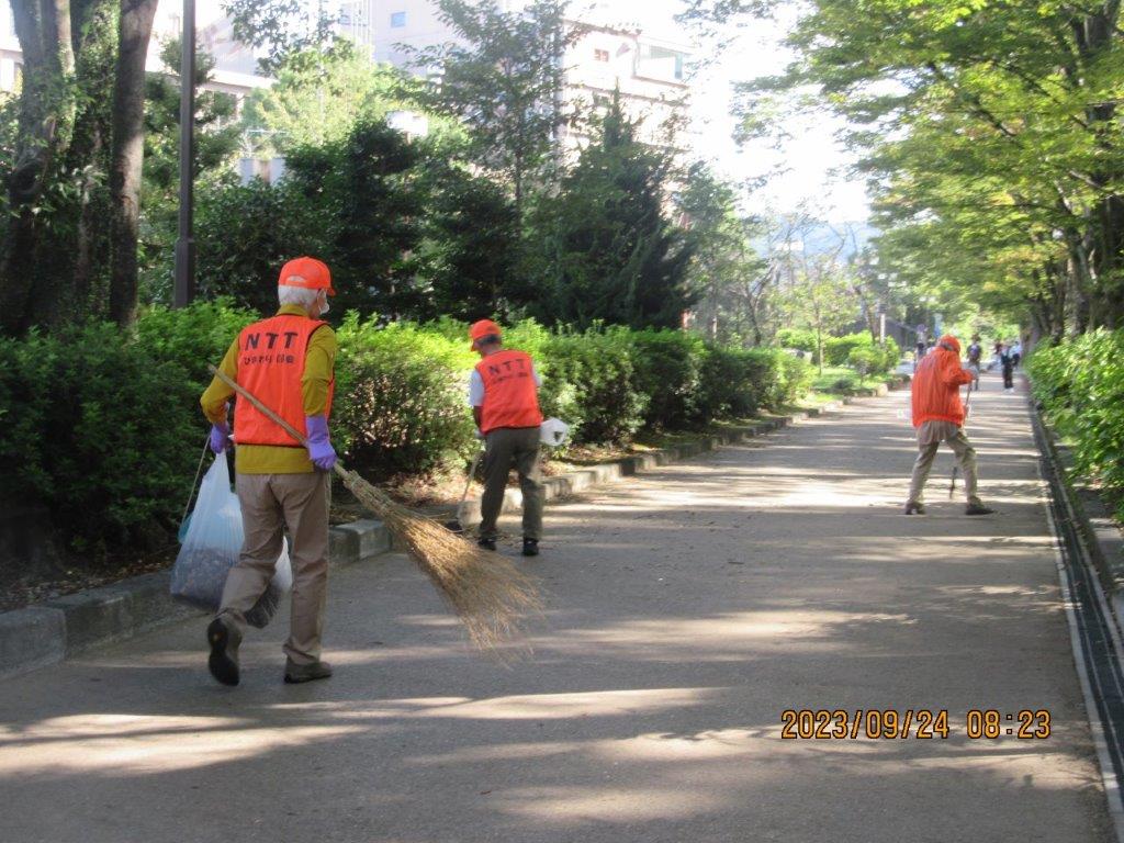 NTT-OB・OGひまわり会 秋彼岸の中、日中友好庭園で清掃活動