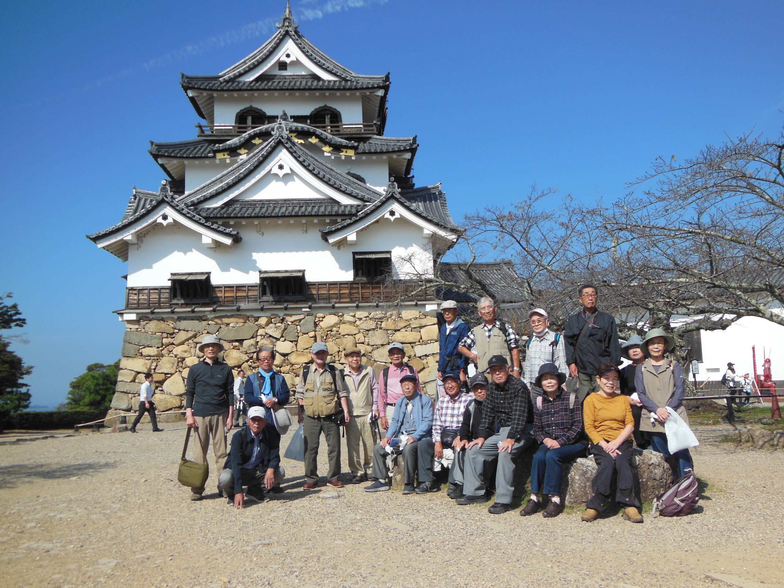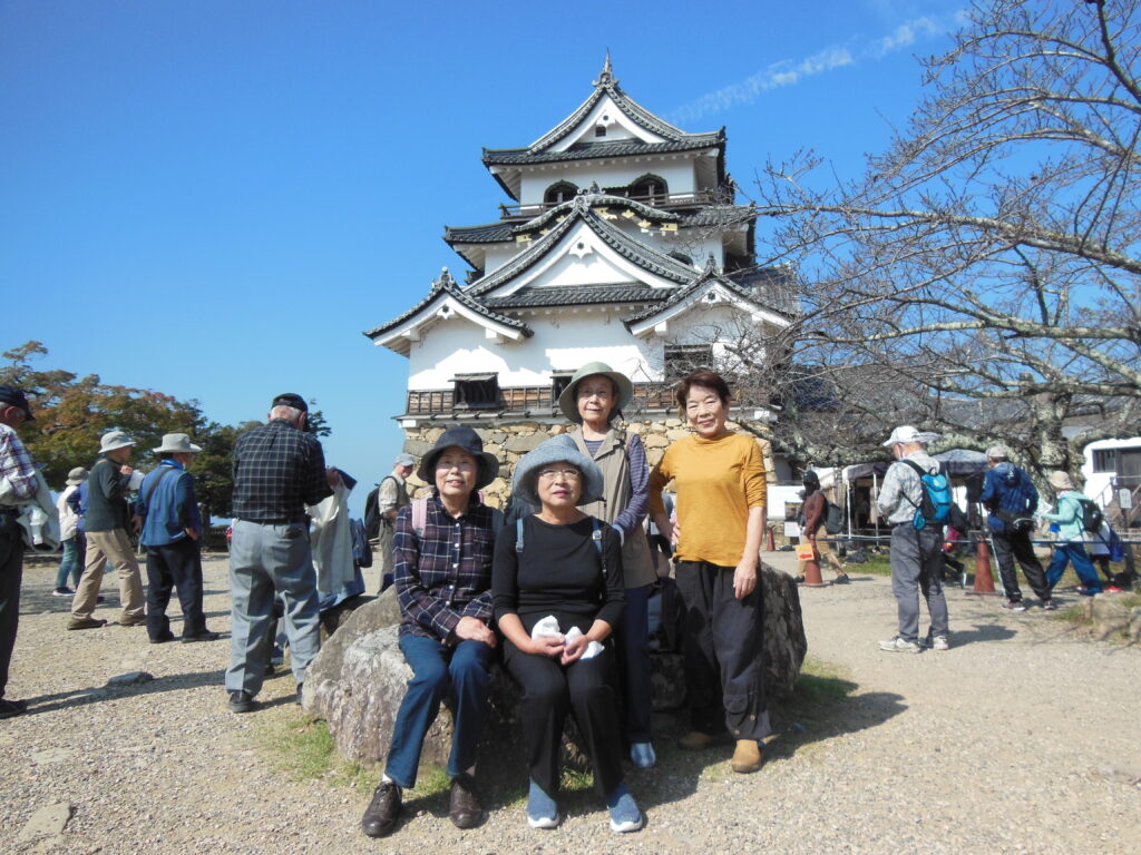 午前9時、メンバーが久しぶりにJR岐阜駅に集合。リーダーから大垣駅で乗り換え、米原駅で乗り換えて彦根駅へ、少々歩こうかいという案内があり、全員張り切って久しぶりの列車に乗車しました。列車内では、それぞれの近況、会員仲間の情報交換に多いに花が咲きました。彦根駅からは一目散に彦根城へ、見事な石垣郡に見とれながら入城、さすがは国宝の城、急こう配の階段は難攻不落、やっとの思いで天守まで登り・・下り・・退城できました。退城後は、城下をぐるりと一周、名勝”玄宮楽々園”で一休み、その後は、三々五々昼食を求めて城下町を散策、帰りの彦根駅へ戻ると結構歩いた(歩かされた)との感じでした。スマホのメーターは11㎞、16,000歩でした。岐阜駅帰着後は、有志の反省会が行われたようでした。(松原 聡 記)<写真をclickすると皆さんの笑顔がよく見えます。>
