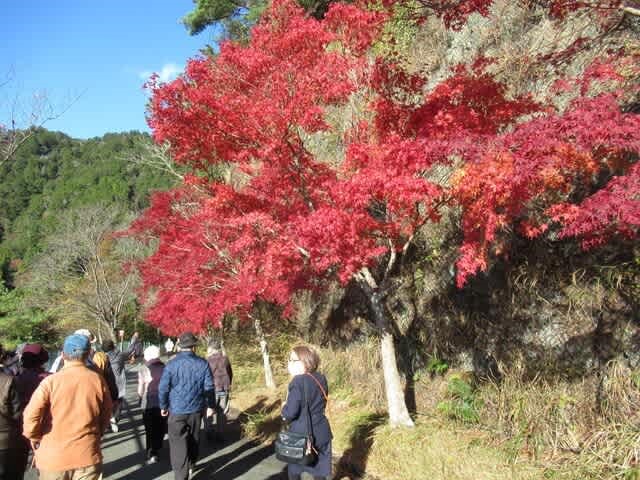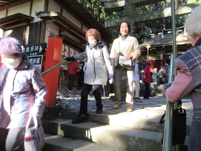 その後、鳳来寺東照宮、本堂へ向かいました。ちょうどもみじ祭りが開かれており、参道のもみじは赤く色づいていました。