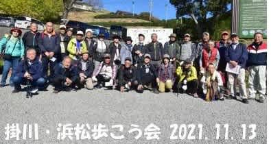 JR掛川駅北口に集合し、バスで粟ヶ岳の麓「東山いっぷく処」まで移動、そして素晴らしい秋晴れの中を粟ヶ岳頂上へ向けて出発。