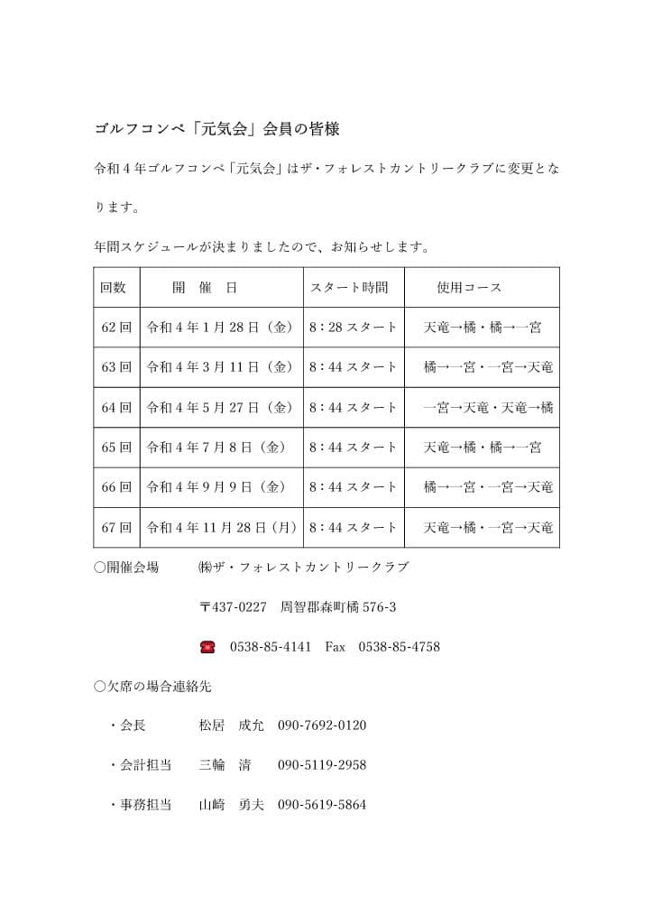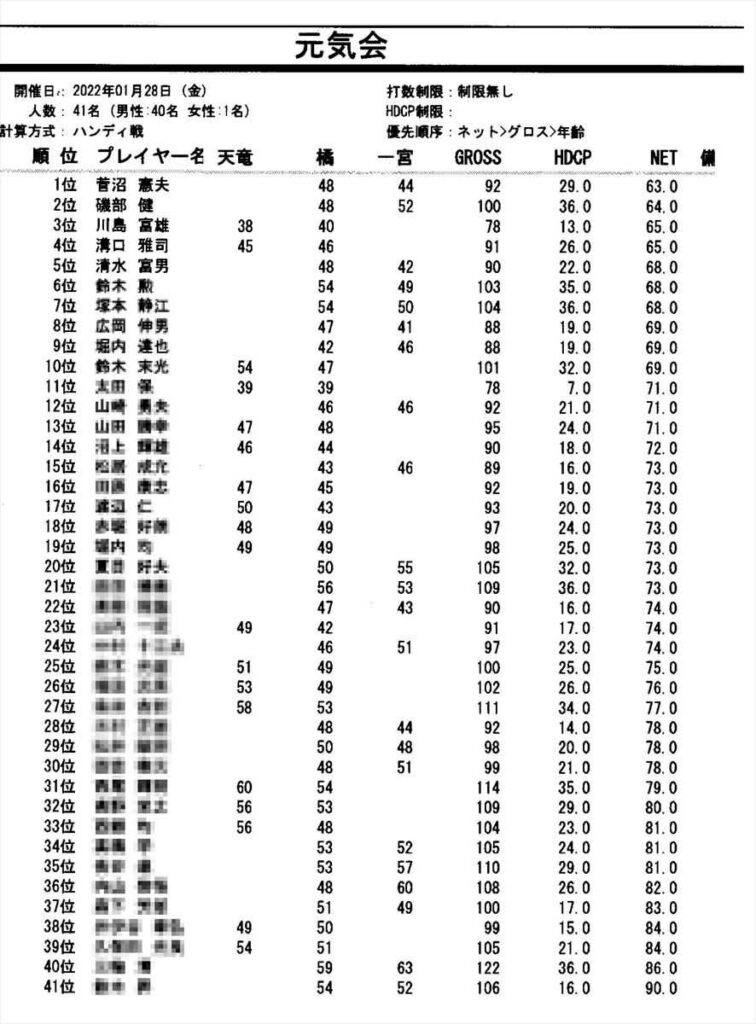 1月28日 元気会が開催されました。令和4年からは会場をザ・フォレストCCに変更し、新たなスタートです。