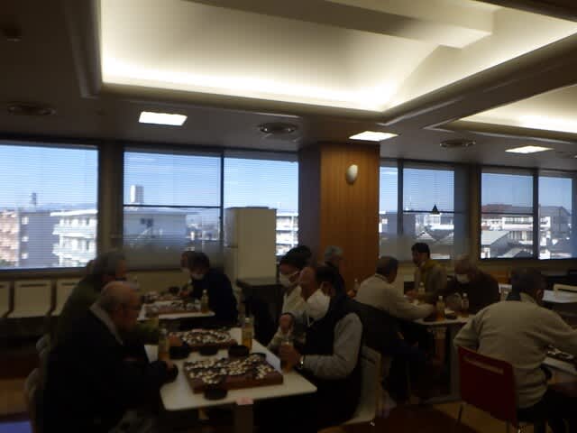 参加者は岐阜地区8名と中濃地区7名の計15名で最高年齢は93歳ですが お互いの健康状況を確認しあいながらも あちらこちらの対局で「しまった」「やられた」と声が響き渡り、楽しいひと時を過ごしました。