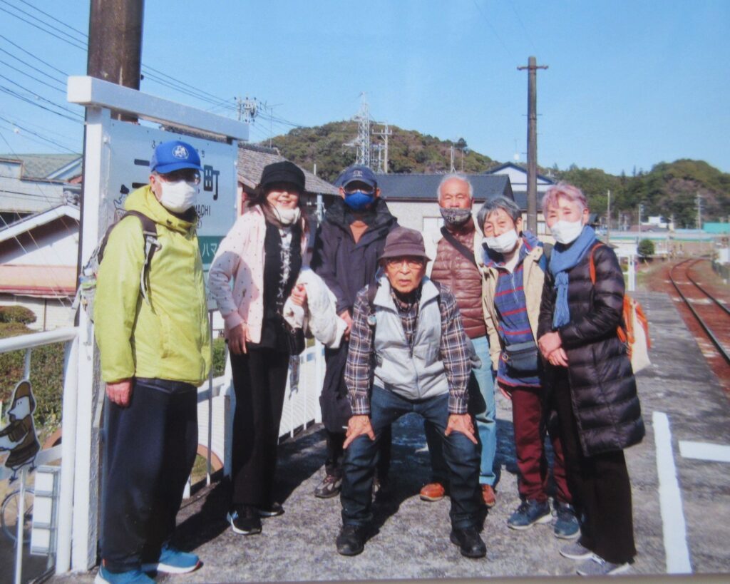3月22日(金)心配だった天気は暖かな日差しの注ぐ1日になった。ブロッサム仲間9人は掛川駅で天竜浜名湖鉄道のラッピング電車に乗りかえて春の日差しにそそがれた田畑や線路沿いに咲いた花を分け入るように走り天竜二俣駅に向かった。