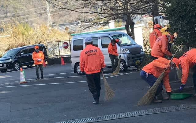 いつもの早起きメンバーが四季の森センターの駐車場に集まりました。駐車場を取り巻く桜は、花びらの落下を必死に堪えている様子、他の木々は、新芽が芽吹き、空気は爽やか美味しく感じる朝でした、2か月ぶりの開催で、参加予定者が集るのを待ちながら近況報告会、参加者の内の3人は、百々ヶ峰を登ってきたとか(上り下りで約2時間)、お元気です。竹箒、ゴミ取りを手に張り切って、いつもの駐車場へつながる車道の清掃作業に取り組みました。落葉は適度にありましたが一気に作業、寒く感じた体は一気に暖かくなりました。(古川 修武 記)