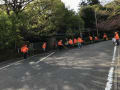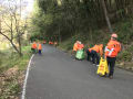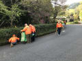いつもの早起きメンバーが四季の森センターの駐車場に集りました。駐車場を取り巻く桜は、花びらの落下を必死に堪えている様子、また、周りの木々は新芽が芽吹き、爽やかな空気は美味しく感じられる朝でした。2か月ぶりの開催で、参加予定者が集るのを待ちながら近況報告会、参加者が揃ったところで、竹箒、ゴミ取りを手に張り切って、いつもの駐車場へつながる車道の清掃作業に取り組みました。落葉は軽く一気の作業で車道は綺麗になりました。