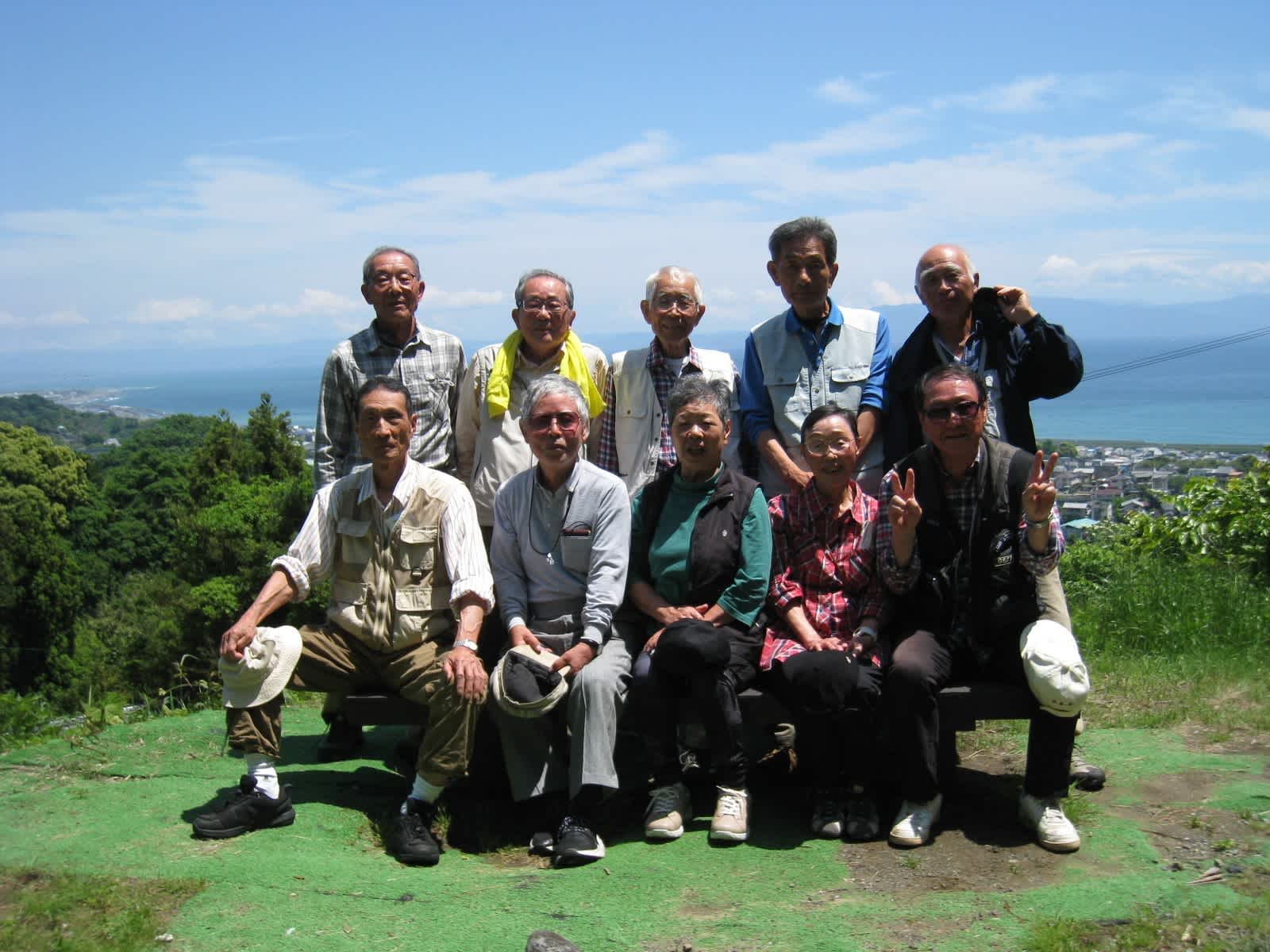 登り口からきつい坂道の連続で、50分歩いたところで休憩。丁度この場所からは富士山は雲に隠れて見えませんでしたが、駿河湾が一望できる絶景の場所でした。