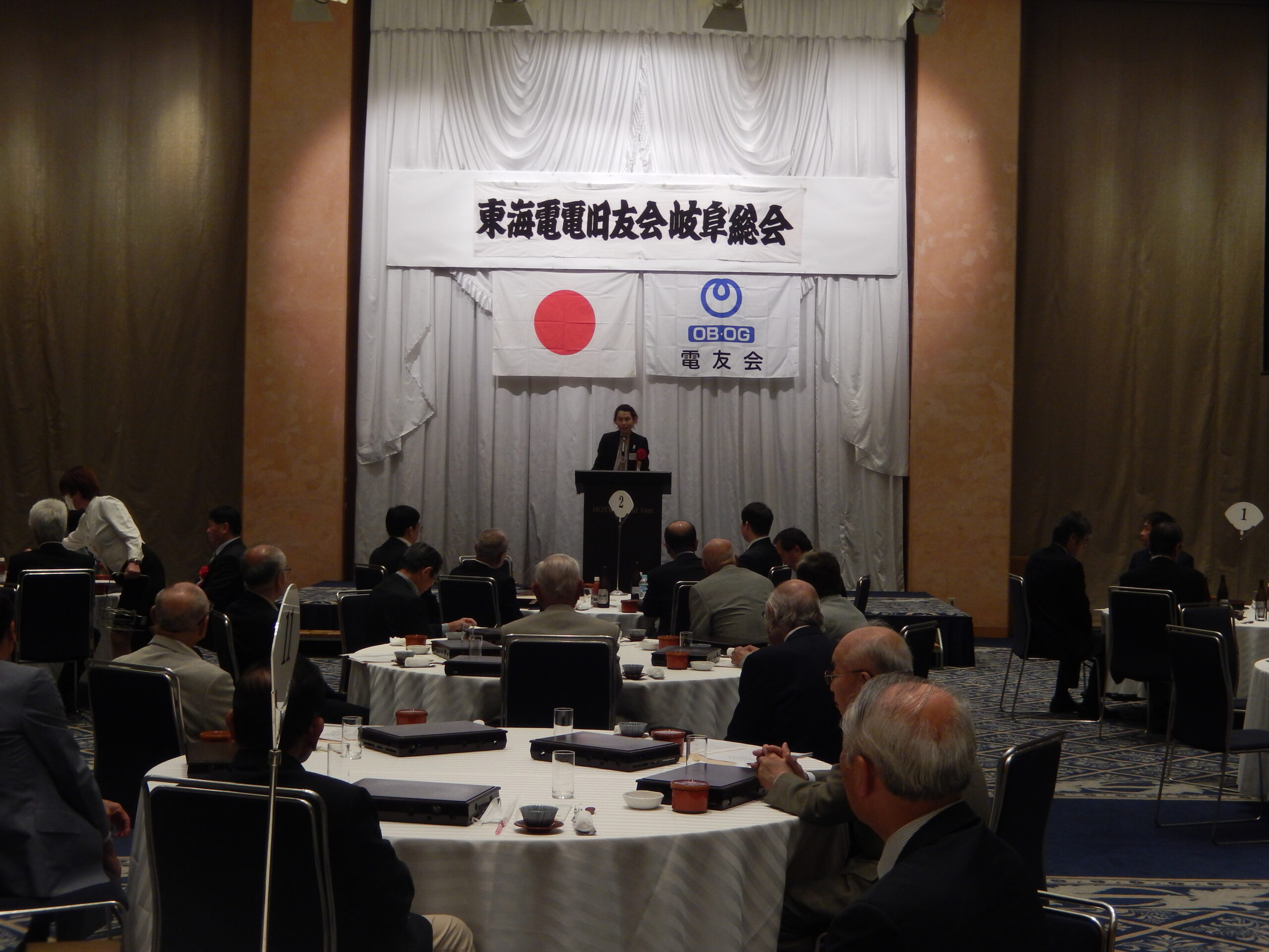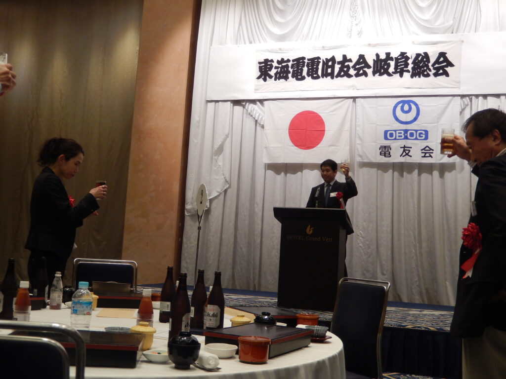 懇親会では、佐藤支部長から「筋力維持に取り組んでいるが、皆さんもいろいろな取り組みに積極的に参加して体力、気力の維持向上努めましょう。」、来賓の児玉NTT西日本岐阜支店長からは、昨年度の経営状況が厳しい状況や「岐阜愛」のもとの事業運営の紹介があり、熊﨑東海東海電電旧友会事務局長からは「活動は明るく、元気に、楽しくやりましょう」との挨拶がありました。