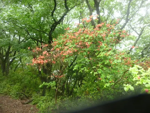 ルートの両サイドは、ヒメシャラが群生しており、その所々に山つつじが朱色の鮮やかな花を付け、今が見頃となっていました。