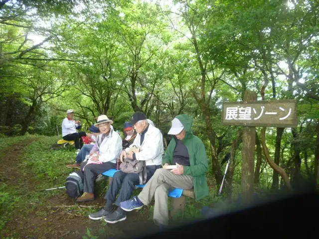 ここから山頂までは、なだらかな上り坂の道が続き、登山道は視界が開けていて、登り始めてから一時間ほどで山頂に着き休憩しました。近くの展望ポイントで弁当を食べました。後は、下り坂を歩いて出発点へ戻り車に乗り合わせて帰路に向かいました。