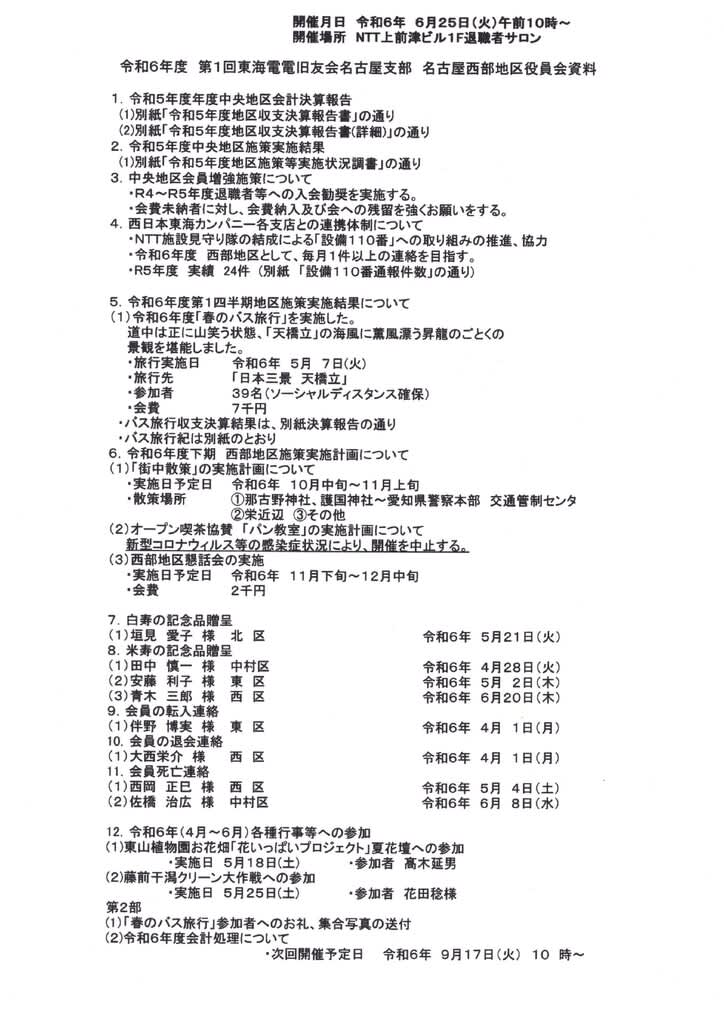 ・議題等  『第1回名古屋西部地区幹事会資料」の通り