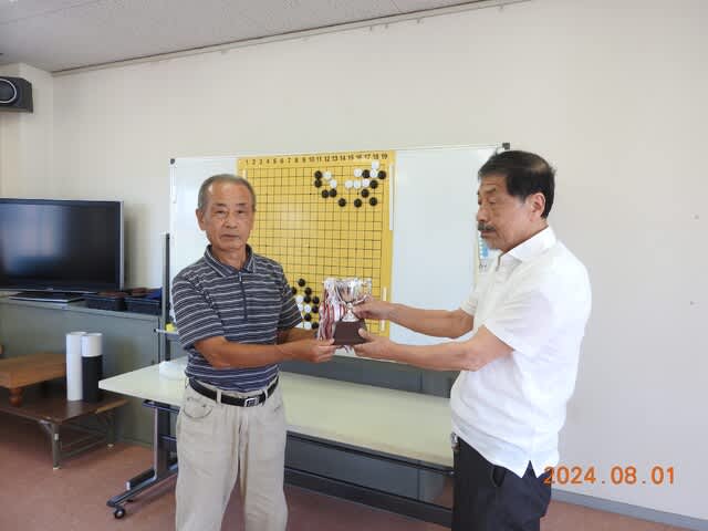 第17期本因坊戦は高段者である橋戸一夫さん(6段)が実力を思い存分に発揮し、6勝1敗の成績で優勝しました。併せてトロフィー授与と、記念撮影も行いました。また、「昇級」「降級」制度を導入しており、1名の「降級」がありました。会員のより一層の棋力アップや対局をすることで元気で楽しい時間を共有できるよう囲碁に取り組んでいます。( 中島 秀孝 記)