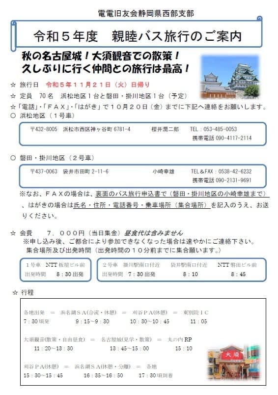 周知・お知らせ4年ぶりの「日帰り親睦バス旅行」です