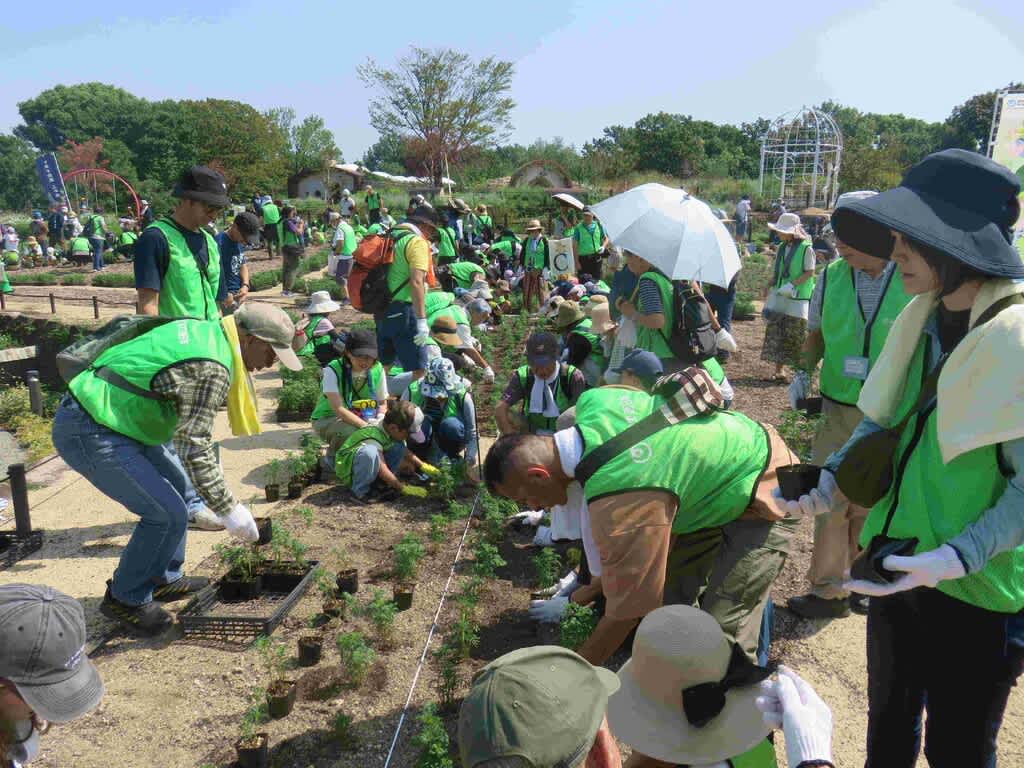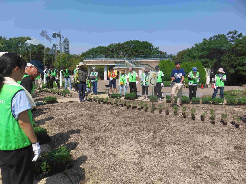 令和6年9月7日(土)、オーナー花壇への植付け作業に名古屋支部から