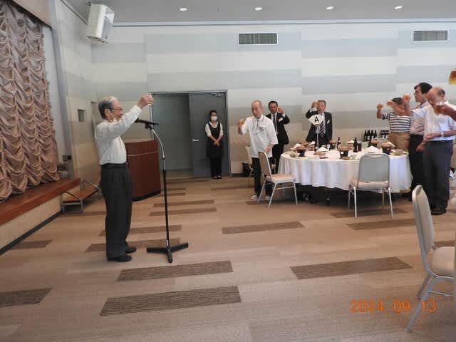 続いて、金井司郎さんの乾杯で懇親会に移りました。1年ぶりの再会に健康を確かめ合ったり、MLBの試合を観にドジャーススタジアムに行き大谷選手のボブルヘット人形を貰えたことなど今年の1年の出来事に花を咲かせたり、時間のたつのも忘れて楽しい時間を過ごしました。名残がつかないうちにお開きの時間となり、平岡勝彦さんの「1年後も大勢の会員の参加と再会を楽しみにしています。」との閉会の言葉で終了しました。 ( 中島 秀孝 記)