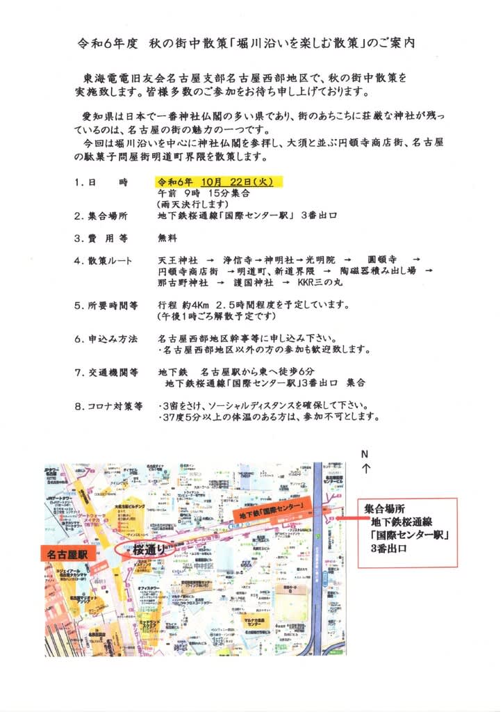 1名古屋西部地区秋の街中散策「堀川沿いを楽しむ散策」を実施します。