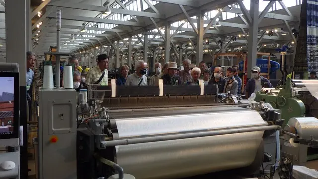 繊維機械館では、当日申し込んだガイドツアーに従って、綿花から糸を紡ぐ技術として人力から機械化・自動化への進化、織機技術の人力織機から最新の繊維機械技術への発展を見ることができました。