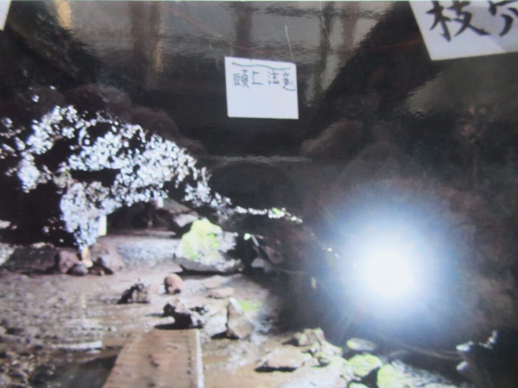 御体内溶岩隧道は狭い隧道で体を狭めて歩いてもヘルメットを被った頭があたり歩くのにやっとでした。