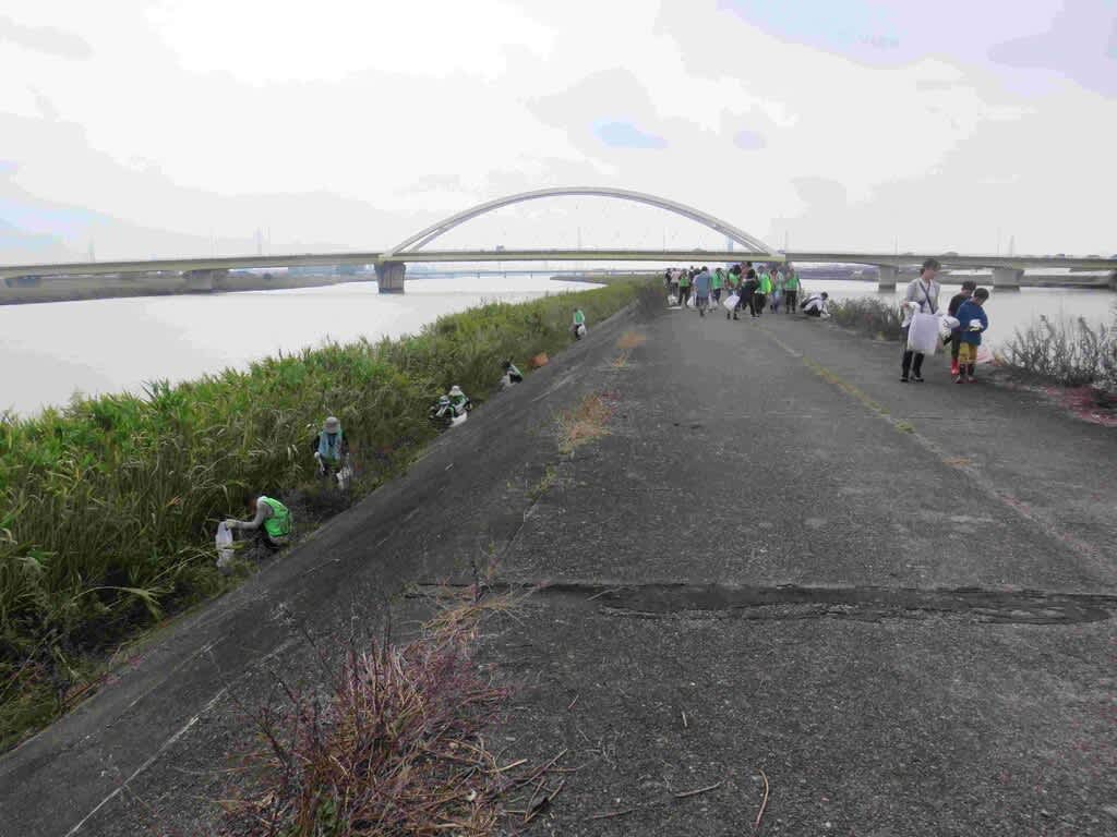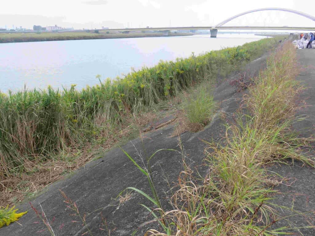 中堤6エリアの内、第3班の    新川側の川岸の汚れ状況を