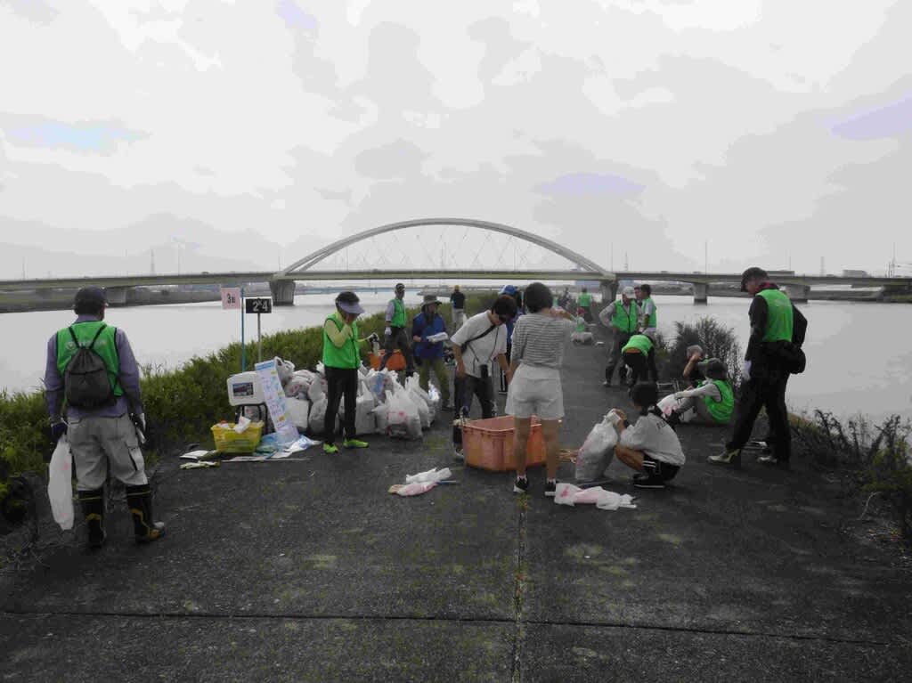 いつもの新川側は水面が高く、庄内川側のみの清掃となる。