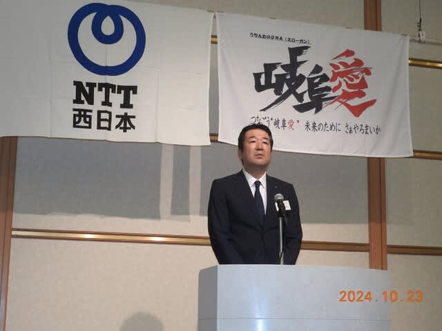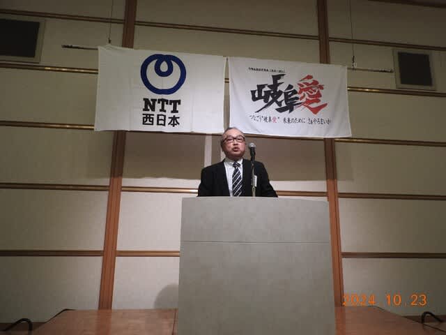 恒例の退職者交流会は、電信電話記念日と重なり思い出になる開催となりました。最初に今年6月に着任されましたNTT西日本立木岐阜支店長から自己紹介、NTT事業への協力のお礼とNTT西日本の事業概要等のお話をされ、続いてNTT西日本岐阜支店の幹部紹介がありました。 旧友会中濃地区加藤代表幹事から電信電話記念日の思い出話や余技作品展の紹介等の挨拶と乾杯の音頭により懇親会に移りました。
