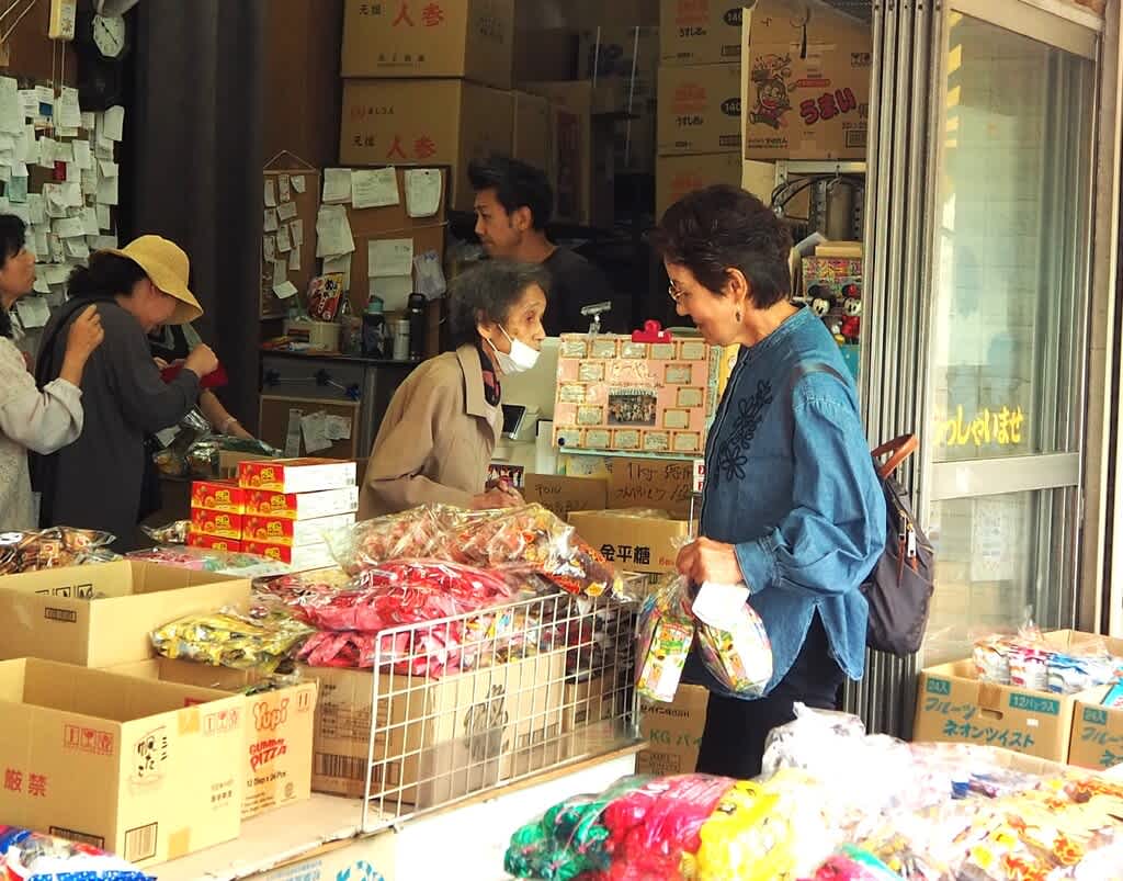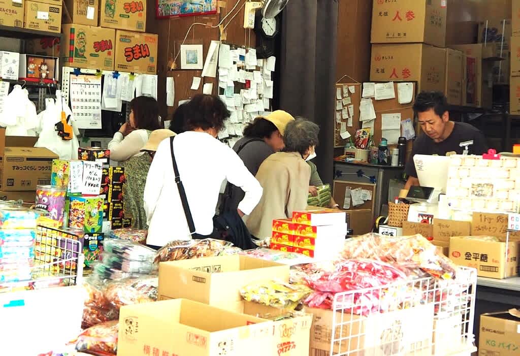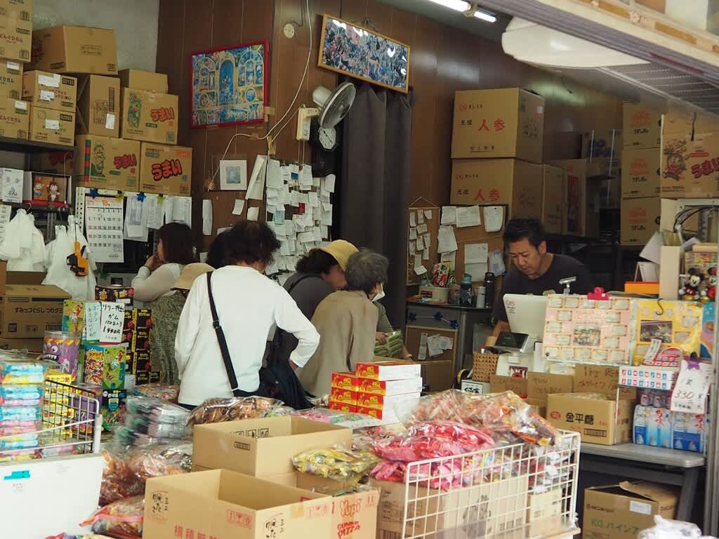 その後、明道町の駄菓子問屋街では、駄菓子を購入しながら