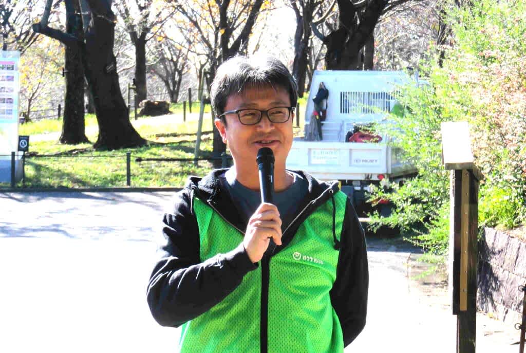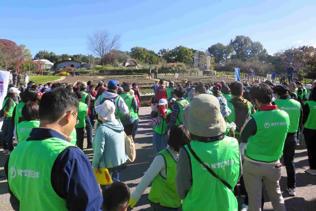 作業の説明等を聞く参加者    の担当するBエリアの真ん中に