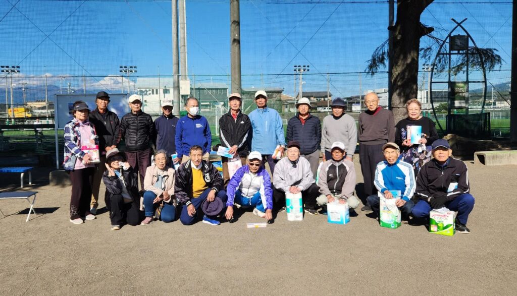 休憩時間には、ベンチに座りお茶を飲みながら談笑する人など、この大会を通じて参加者が思い思いの楽しい時間を過ごせたと思いました。最後は成績発表をして、健康で過ごしていただき来年も参加していただくようお願いして終了となりました。