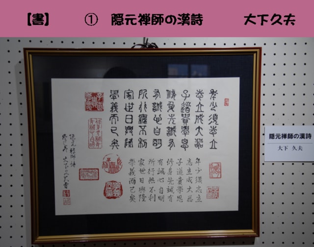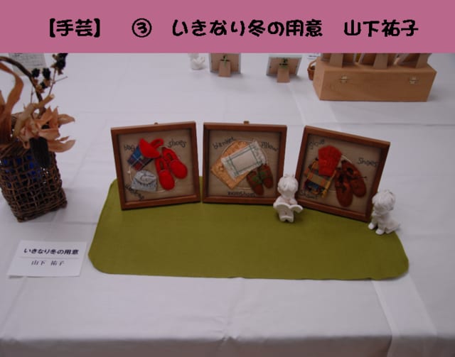 この日のために、腕を振るわれた書、絵画、版画、写真、工芸、手芸、園芸など、41点にのぼる作品が展示され、2日間で112名の入場者を数えるところとなりました。 こうした発表の場が持てることのより、出品者の創作の意欲が盛り上がることと感じるとともに、飛騨の匠の技が発揮されていたようです。次回の開催もよろしくとの思いです。 なお、今回はウェブによる作品展として、すべての作品を旧友会ホームページに展示し観賞できるようにしていただきました。(大下 久夫 記)