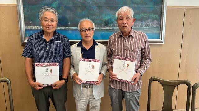 (写真)左から、第3位の佐藤邦隆様、優勝の奥田秋夫様、準優勝の林 秀昭様です。