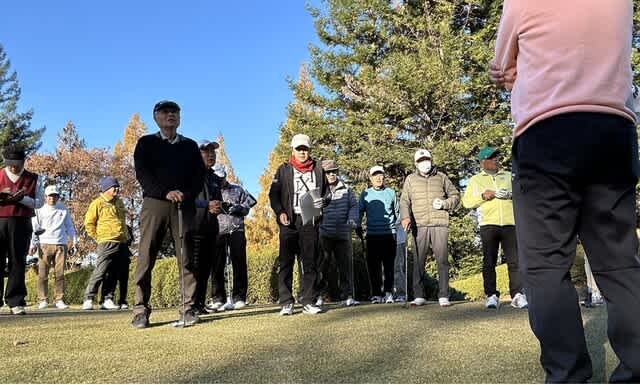 ゴルフ日和の雲一つない晴天、初冬とは思えぬ暖かな天候に恵まれ、楽しいラウンドとなりました。今回のゴルフ場はNOG会では初めての開催でグリーンのアンジュレーション、転がりスピードやコースの落ち葉に悩まされる難解なコースでした。